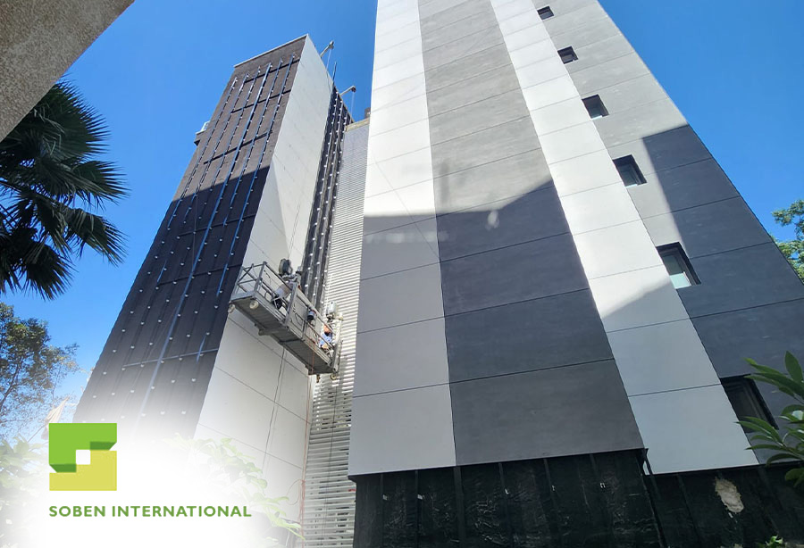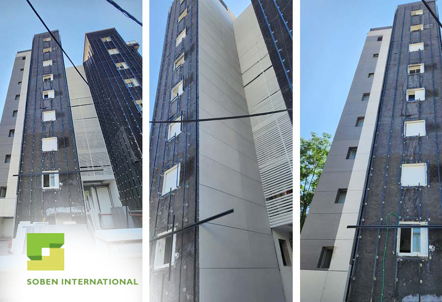 soben boards – חיפויים מפייבר צמנט בצפיפות גבוהה (1600 ק"ג/מ"ק) מוטמעי פיגמנט (FULL BODY COLOR) אטומים למים באופן מוחלט, מותאם לעמידות חיצונית ולכל מזג אויר ובכלל זה עמידות UV (קרינה אולטרה סגולית) עמידות לנגיפה, סיווג גבוה לעמידות באש.